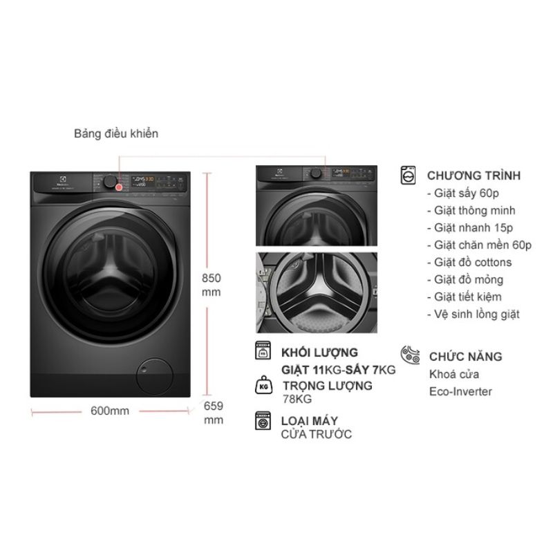 - Máy Giặt Sấy Electrolux Inverter 11/7 Kg EWW1143R7SC.